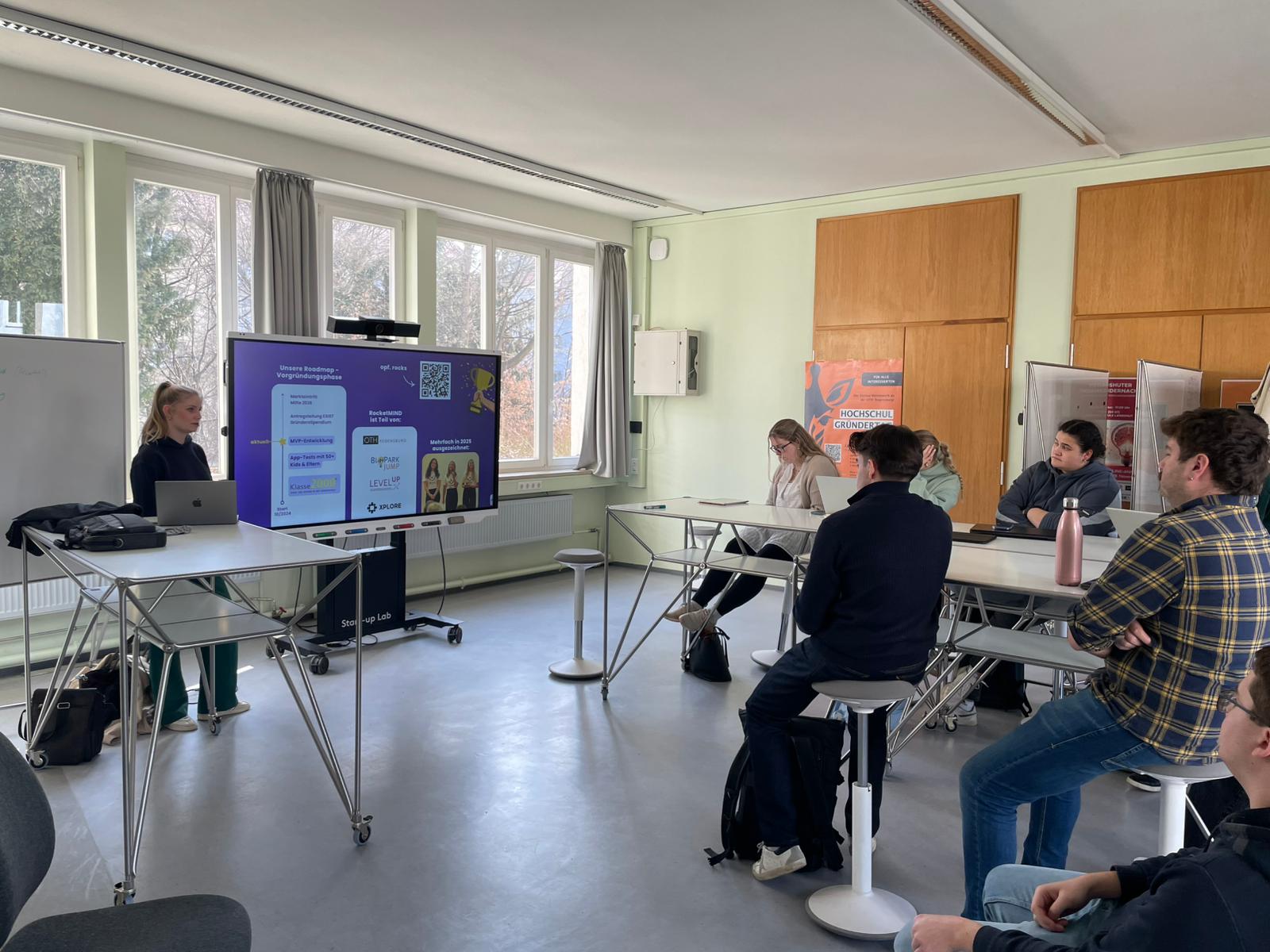 Zentrale Frage dabei war auch: Was bedeutet es eigentlich, ein Startup aufzubauen? Darüber berichtete Annalena Lüdeke. In ihrem Gastvortrag gab sie Studierenden Einblicke hinter die Kulissen des Regensburger Startups RocketMIND, das von Studierenden aus dem Studiengang Master Digital Entrepreneurship an der OTH Regensburg gegründet wurde. Im anschließenden Austausch wurde gemeinsam über Unternehmertum und Produktentwicklung diskutiert. Besonders spannend war dabei der Perspektivwechsel zwischen Theorie aus dem Studium und den Erfahrungen aus der Startup-Praxis.