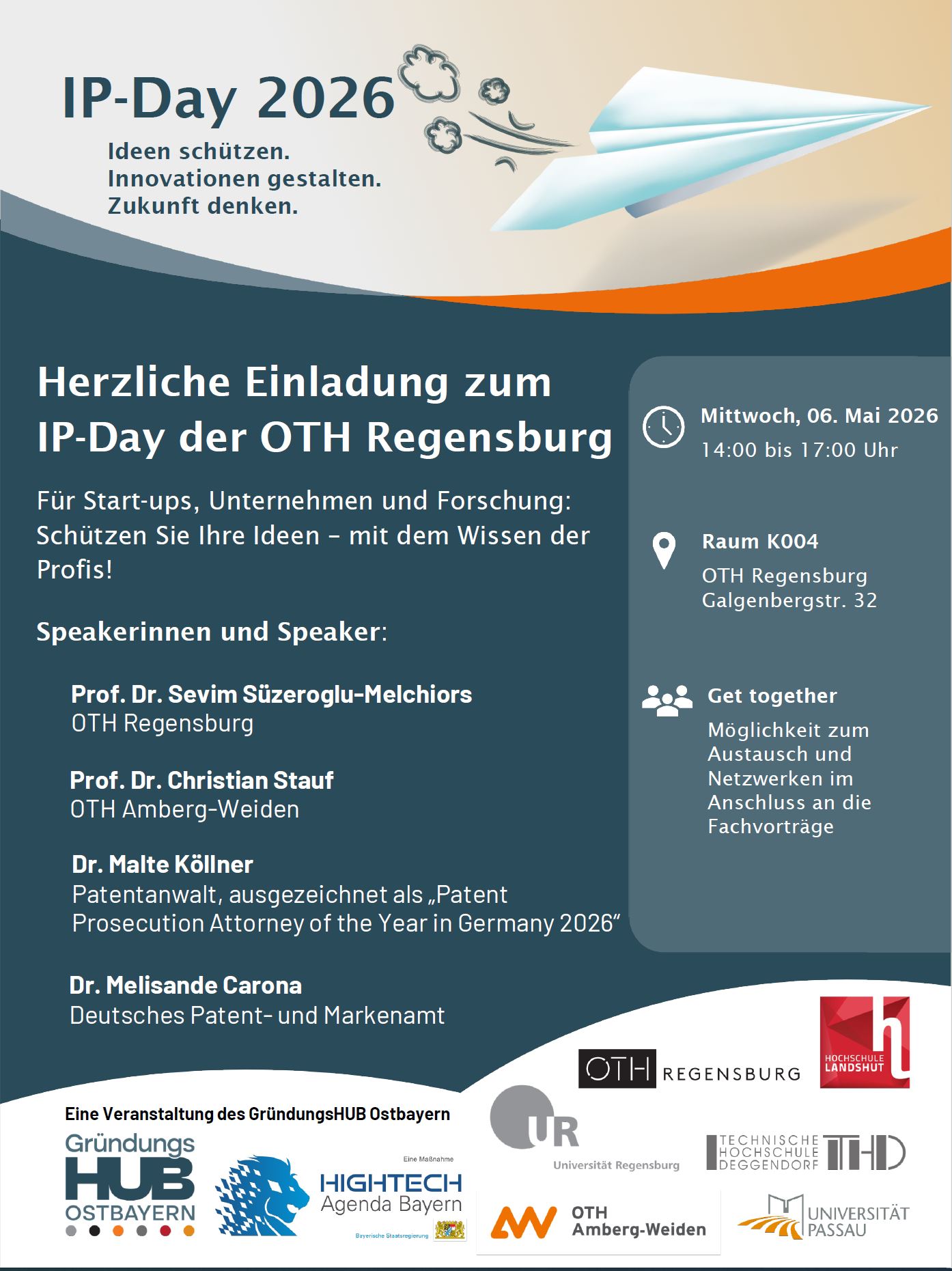 Der 3. IP-Day an der OTH Regensburg richtet sich an Start-ups, Unternehmen sowie Akteure aus Forschung und Entwicklung.